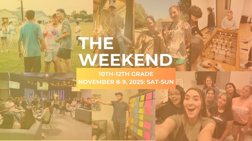 Throughout the school year, we will be hosting three experiences we call "The Weekend" for specific student age groups (6-7th, 8-9th & 10-12th). As part of the weekend, students will have lots of fun, engage in great worship, and learn Biblical teaching that focuses on issues and opportunities specific to their lives.